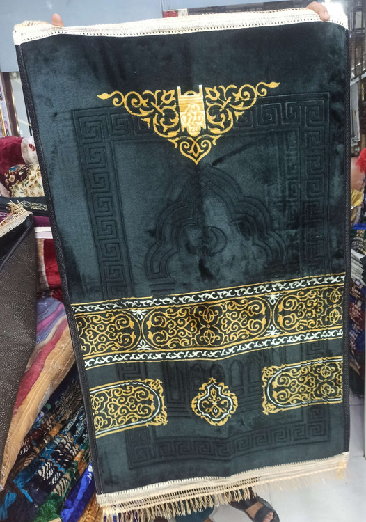 سجاده وارداتی جنس مخمل درجه یک با زیره ترمزدار و سایز بزرگ، جانمازی طرح کعبه