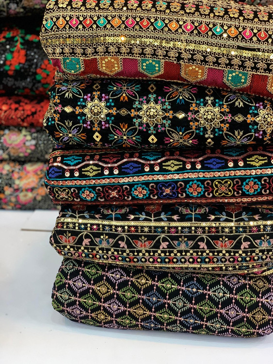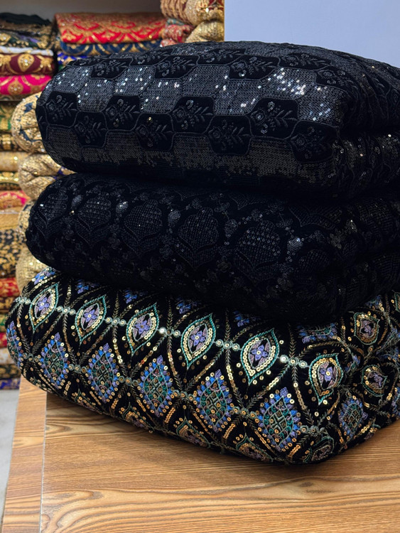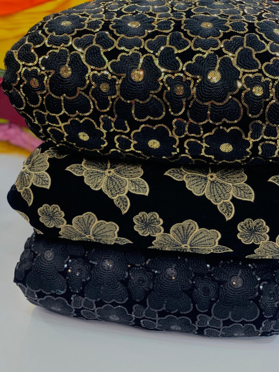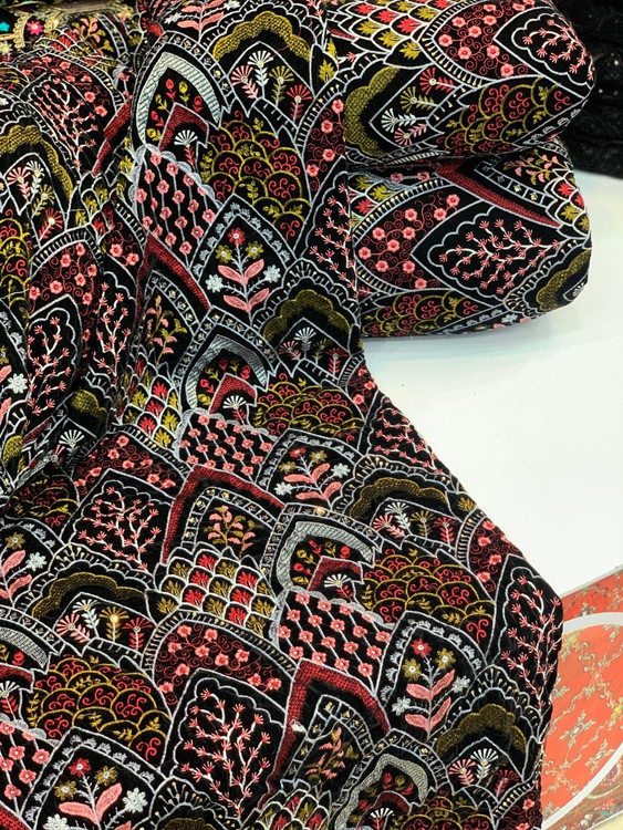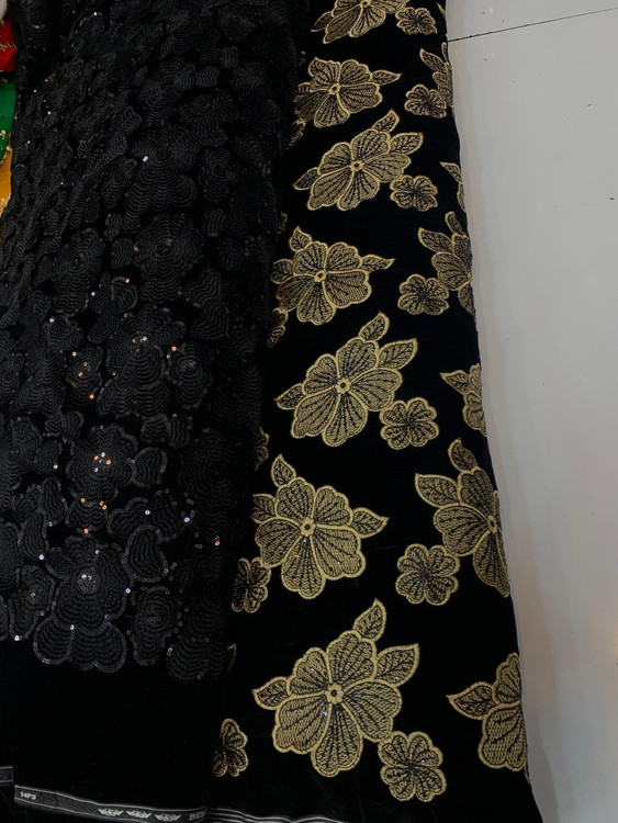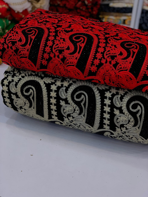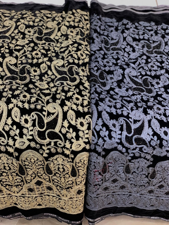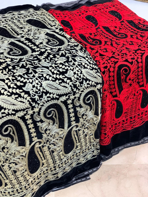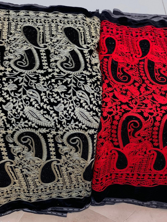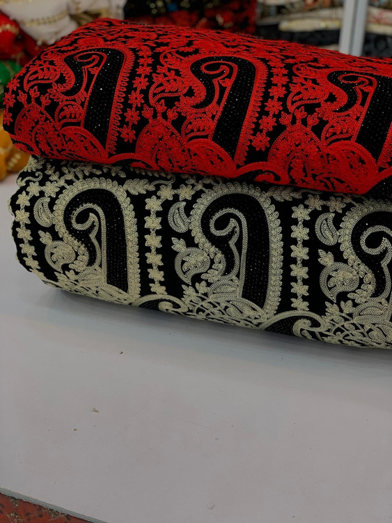 Velvet and Linen Embroidered Fabric Per Meter