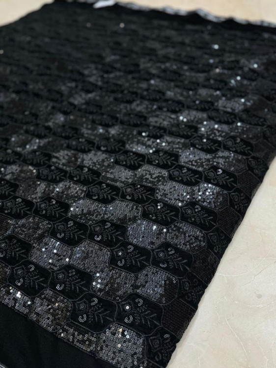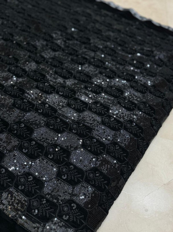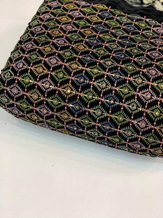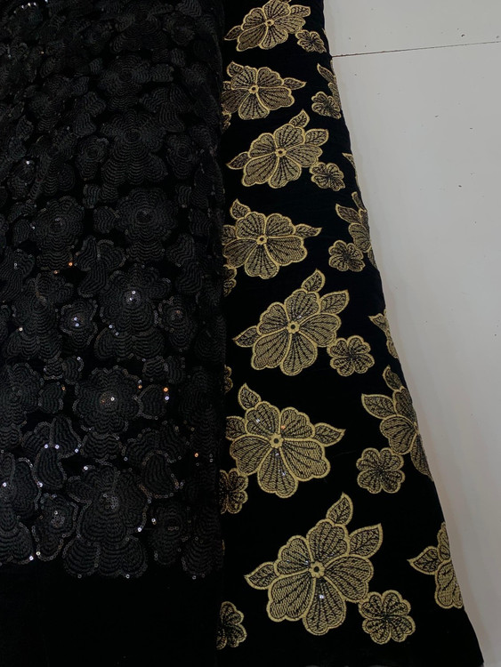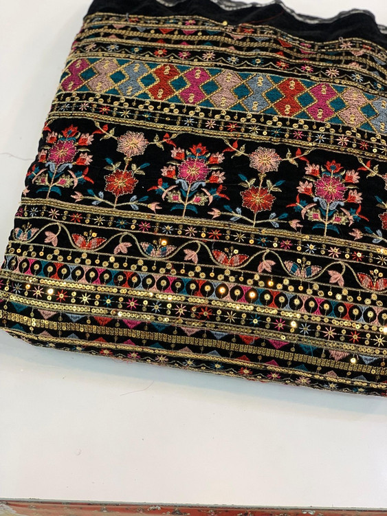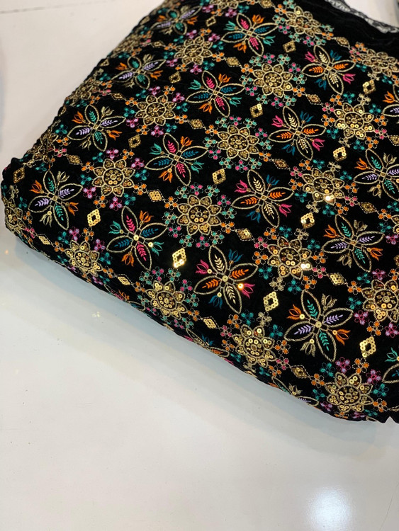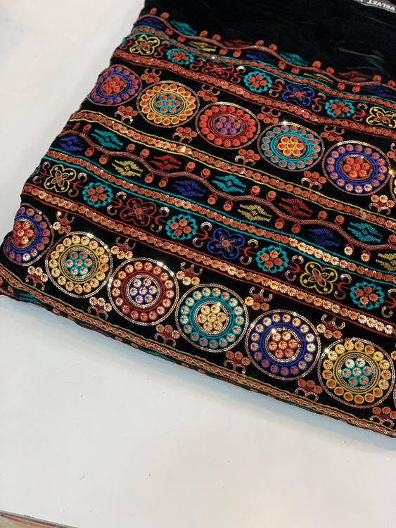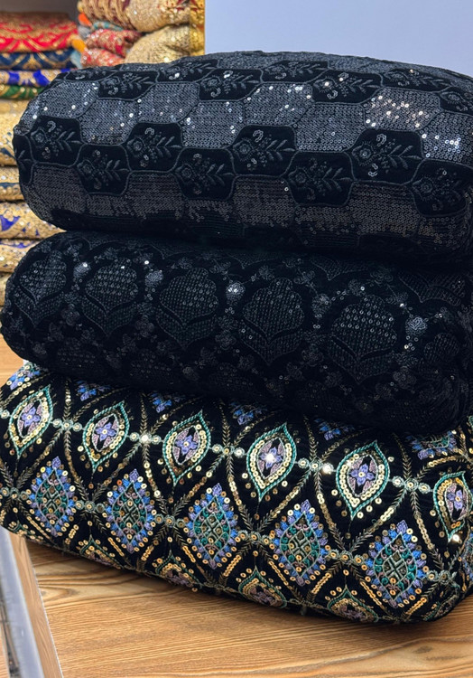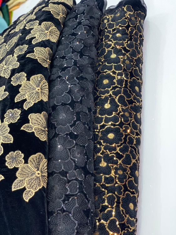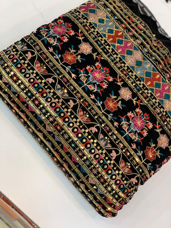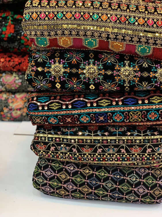 Velvet and Linen Embroidered Fabric Per Meter